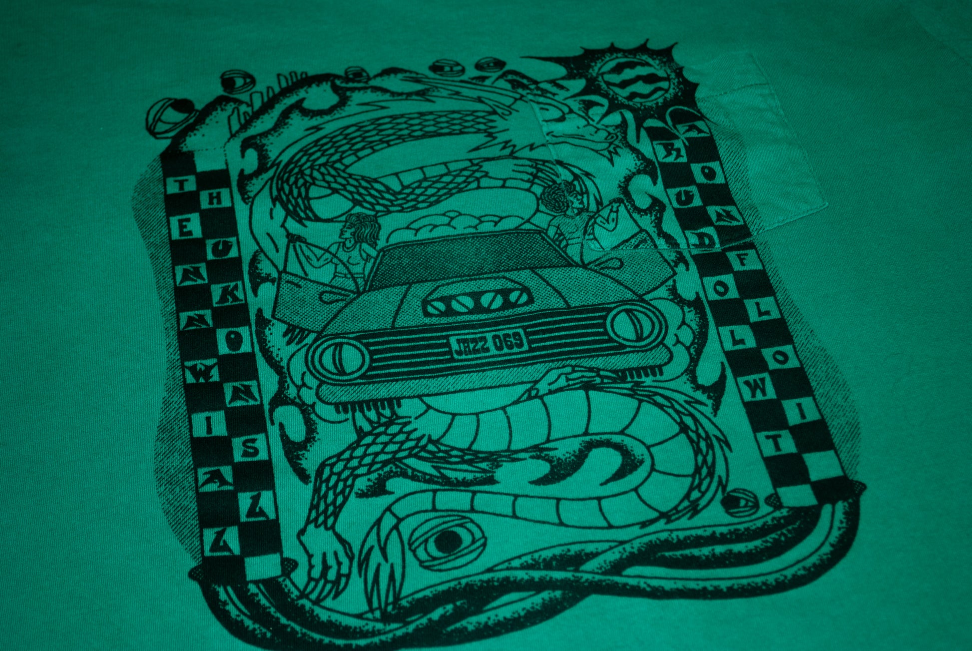 Green Pocket 90's Tee(XL) - 24.5" Width, 29" Length, Single Stitch Sleeves, Printed over the pocket technique!